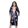 Жіночий атласний халат з рукавами 7/8 довжини, зав'язаними на талії. Кишені на стегнах.
